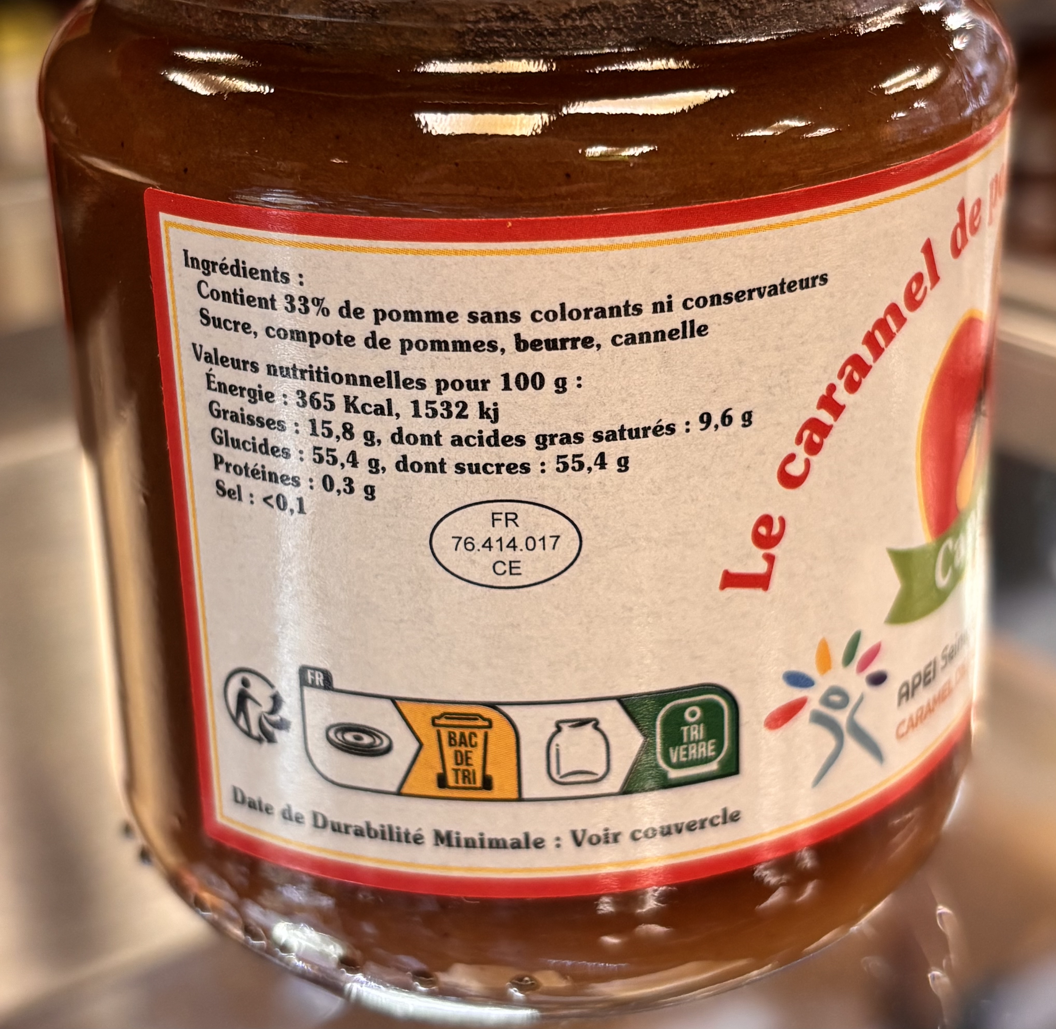 Ingrédients : Contient 33% de pomme sans colorants ni conservateurs, sucre, compote de pommes, BEURRE, cannelle.