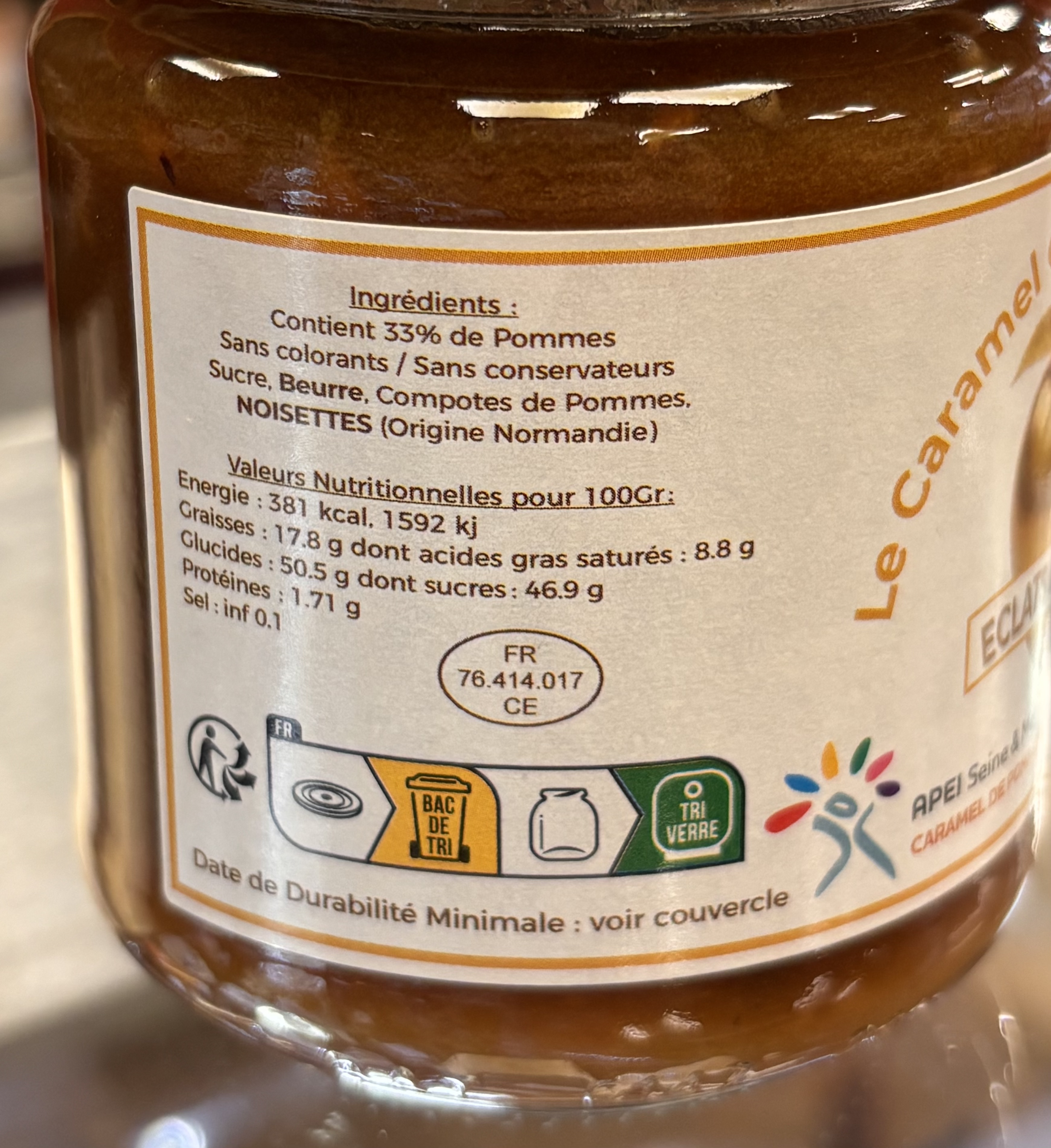 Ingrédients : Contient 33% de pomme sans colorants ni conservateurs, sucre, compote de pommes, BEURRE, NOISETTE